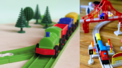 高速どうろと組み合わせると迫力ある走行遊びができます。車好きのお子さまにとって満足度が高く、街の“にぎわい”や“レースごっこ”につながるセットです。