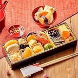 てまりは、伝統的な和風をベースにしながら創作風のアレンジを加えた一段重です。小さな器に彩り豊かに盛り付けられ、見た目の美しさと味の多様性を同時に楽しめます。創作要素がありながら落ち着いた味付けにまとめられているため、幅広い年代に食べやすい構成になっています。冷凍で12月30日お届けに対応しており、年末に向けて計画的に準備しやすい点も魅力です。