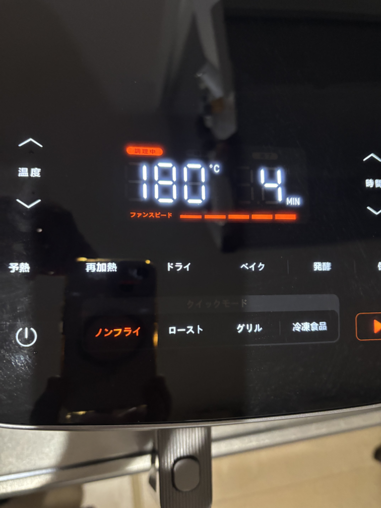 COSORIノンフライヤーは先に余熱をしておくと焼き上がりが安定します。