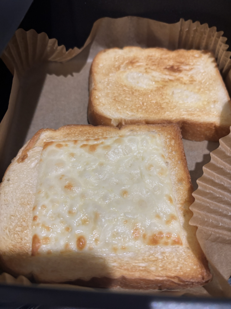 今回はチーズトーストとバタートーストの2枚で試しています。